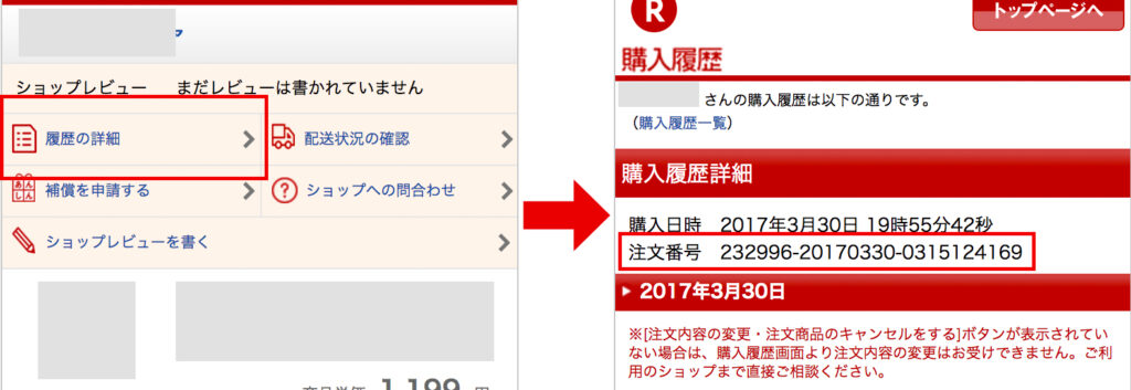 楽天市場の注文番号確認方法